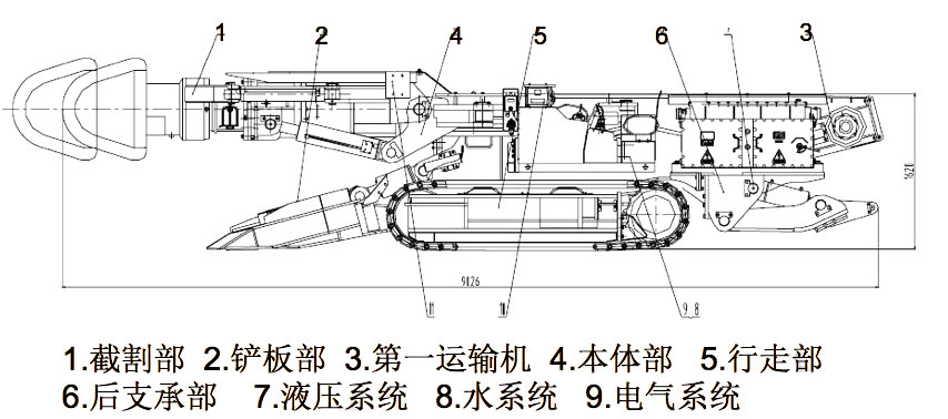悬臂式掘进机是一种能够实现截割、装载运输、自行走及喷雾除尘的联合机组。随着回采工作面综合采煤机械化的快速发展,煤矿对巷道掘进速度要求越来越高。为了提高采准巷道的速度,悬臂式掘进机被大力研制并逐步发展完善。悬臂式掘进机要同时实现剥离煤岩、装载运出、机器本身的行走调动以及喷雾除尘等功能,即集切割、装载、运输、行走于一身。它主要由切割机构、装载机构、运输机构、行走机构、机架及回转台、液压系统、电气系统、冷却灭尘供水系统以及操作控制系统等组成。